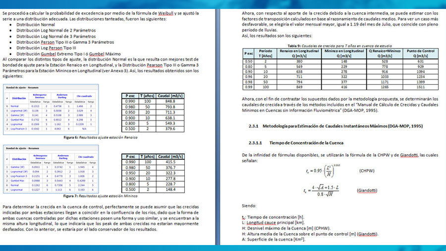 - Estudios hidrológicos para determinar el comportamiento pluviométrico y/o fluviométrico de cauces.