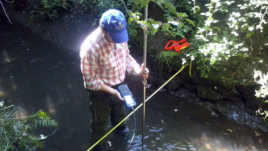 Medición de caudales (volumen por unidad de tiempo) tanto en ríos, esteros o canales de riego siguiendo las indicaciones de diversas normativas (DGA, CNR o ISO). Lo anterior, para determinar los caudales pasantes en una ubicación y tiempo dado, pérdidas o aportes de aguas en un tramo, o confección de una curva de descarga.