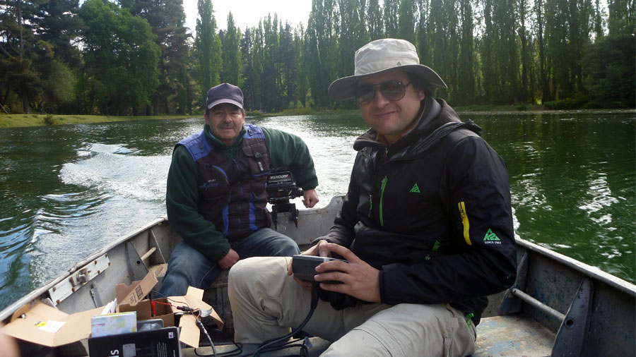 Medición de lechos de ríos, tranques o canales mediante bote con ecosonda con el fin de generar perfiles batimétricos en secciones transversales o superficies de fondo de los cuerpos de agua. Así mismo, podemos realizar la topobatimetría para asociar los lechos con bordes del cauce y planicies de inundación, obteniendo una superficie completa para el proyecto.